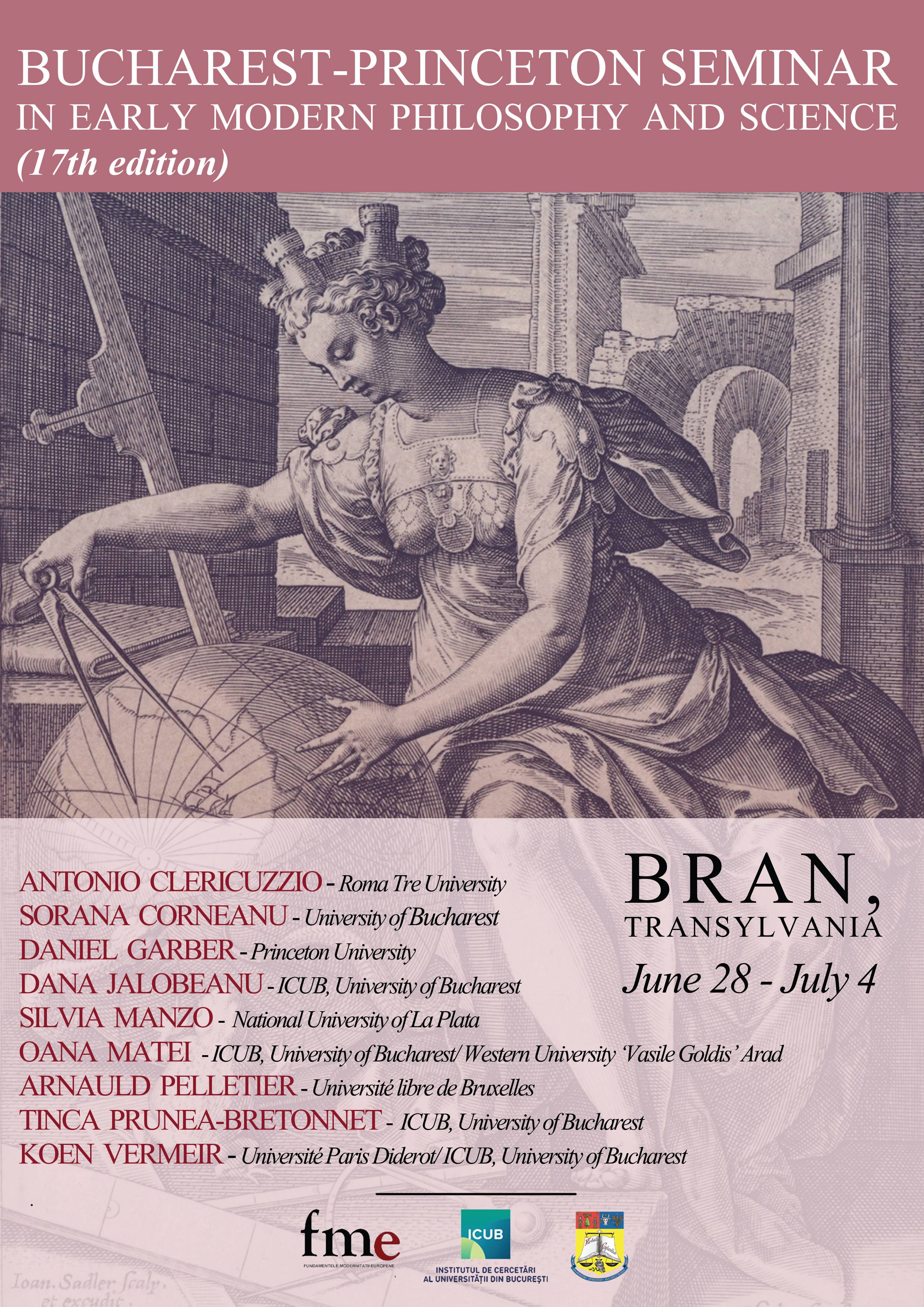 Invited speakers include: Antonio Clericuzio (Roma Tre University), Sorana Corneanu (University of Bucharest), Daniel Garber (Princeton University), Dana Jalobeanu (ICUB), Silvia Manzo (National University of La Plata), Oana Matei (ICUB/ Western University ‘Vasile Goldis’ Arad), Arnauld Pelletier (Université libre de Bruxelles), Tinca Prunea-Bretonnet (ICUB), Koen Vermeir (Université Paris Diderot/ ICUB).
