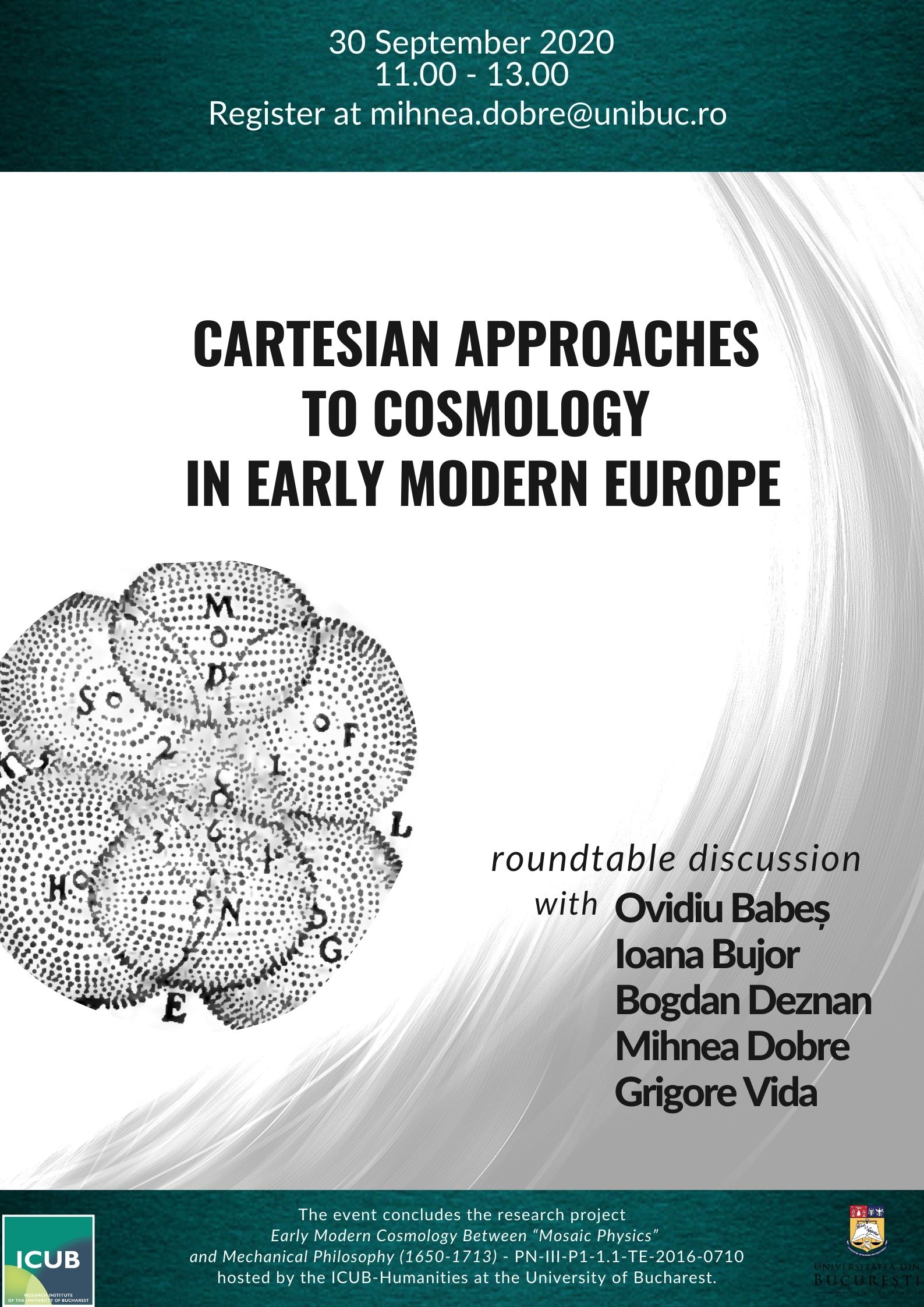 In order to encourage discussion, we have prepared some materials to pre-circulate with registered participants. We also aim to discuss a new draft of a preprint related to the collection of Cartesian cosmological illustrations. To access the materials, please register at mihnea.dobre@unibuc.ro.