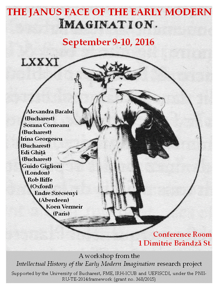 A workshop from the Intellectual History of the Early Modern Imagination research project supported by the University of Bucharest, IRH-ICUB, FME and UEFISCDI, under the PNII-RU-TE-2014 framework.