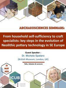 She will give a lecture entitled “From household self-sufficiency to craft specialists: key steps in the evolution of Neolithic pottery technology in southeastern Europe”.