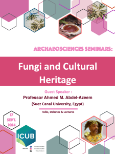 This seminar focuses on the dual role fungi play in cultural heritage—both in biodeterioration and as potential tools for preservation. Fungi are known for degrading historical artefacts like wood, paintings, fabrics, and paper due to their enzymatic activity and ability to grow in low-moisture environments. The decay processes they cause have been observed throughout history, even mentioned in the Bible as “leprosy” affecting structures. Despite their damaging effects, fungi also offer the potential for bio-preservation. This seminar will explore new methods that harness fungi’s beneficial properties for conserving monuments, providing sustainable solutions to prevent further degradation of archaeological treasures, such as stony monuments and mummies.